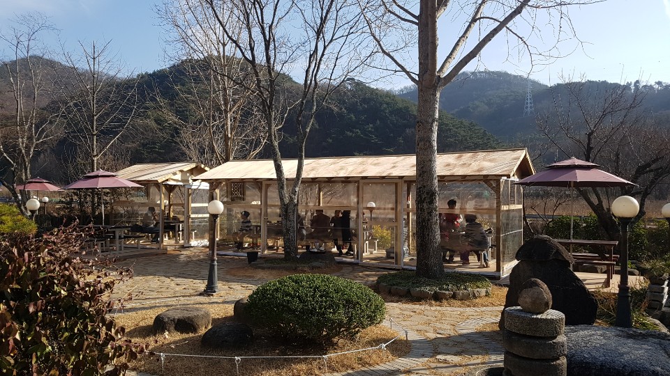 겨울에도 외부에서 즐길 수 있도록 바람막이가 있는 정자가 새로 생겼네요.
